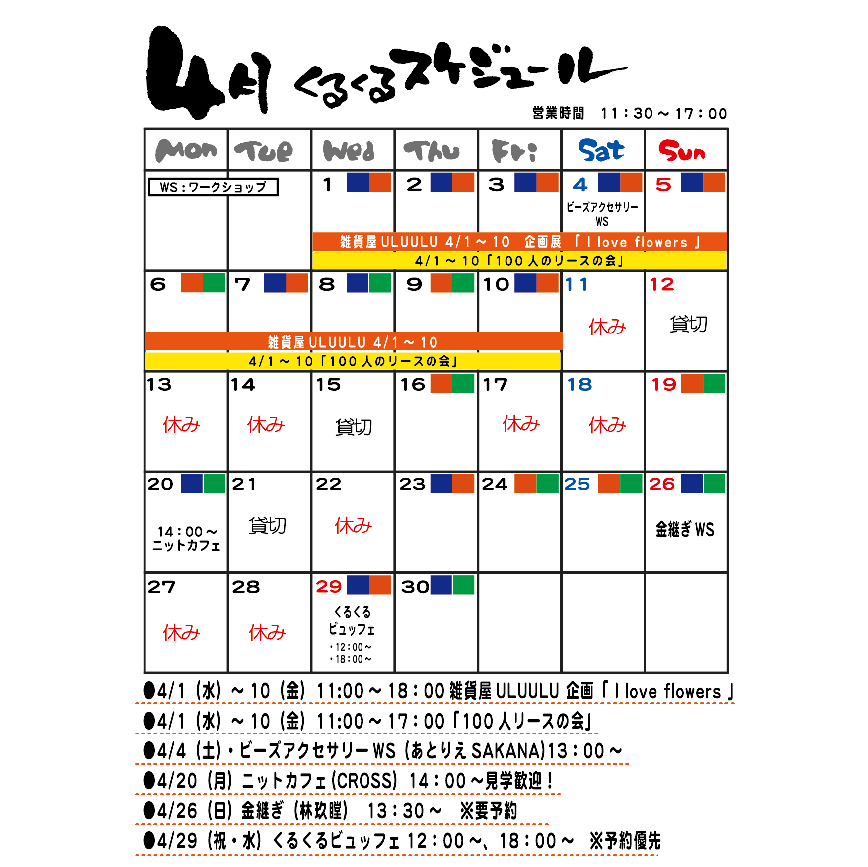 ●4/1(水)~10(金)11:00~17:00「100人リースの会」